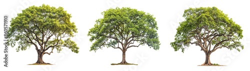 Large trees collection with wide branches and leaves isolated on transparent or white background