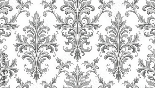 surface, interior, bold, home decor, elegant, texture, modern, motif, damask, illustration, muted, art, brocade, textile, grey, leaf, white, vector, classic, graphic, design, traditional, repeating, subtile, background, seamless, swirling, fabric, wallpaper, vine, decoration, design element, tapestry, minimalistic, pattern