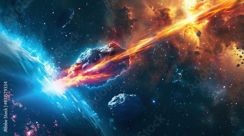 Laser Beam and Comet in Space: Abstract and Bright Colors
