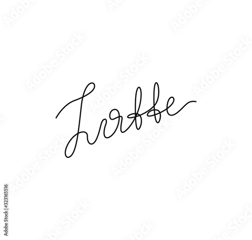 Latte hand lettering inscription. Continuous line drawing, isolated vector illustration.