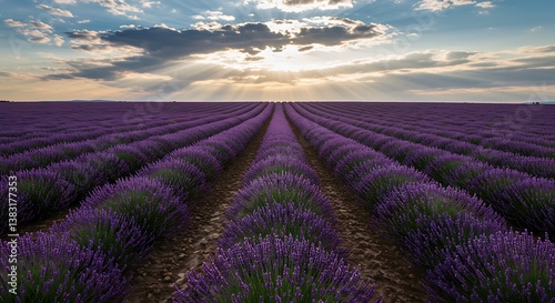 lavandula, field, row, purple, sunset, sunbeam, cloud, sky, landscape, nature, agriculture, flower, botany, rural, scenic, tranquil, serene, peaceful, summer, beautiful