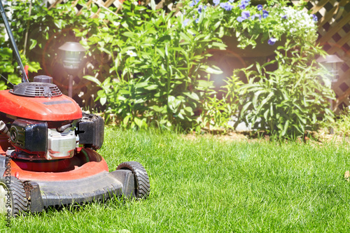 Lawn mower cutting the grass.