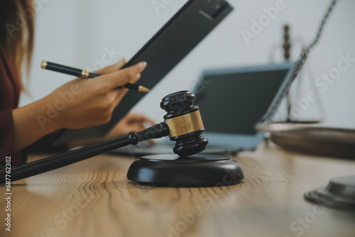 Lawyer, legal advisor, businessman brainstorming information on agreement details Business contracts in legal processing books for accuracy in contract documents. joint financial investment.