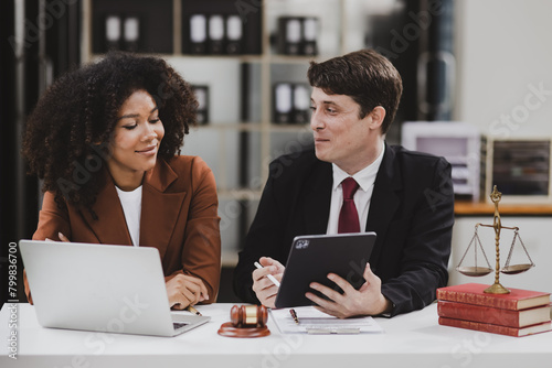 Lawyer or judge consult, Two female lawyers discussing about contract and agreement concept.