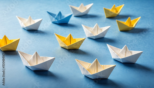 Leadership Concept with Origami Paper Boats and Minimalist Design