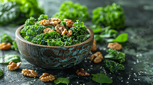 Leafy green salad with kale, spinach