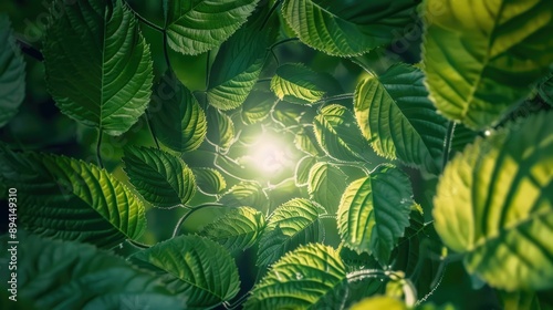 Leaves forming a spiral pattern in mid-air, glowing with soft light