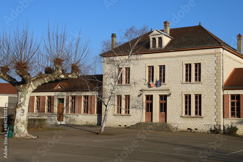 L'école publique élémentaire Victor Hugo, vue de l'extérieur, village de Morestel, département de l'Isère, France