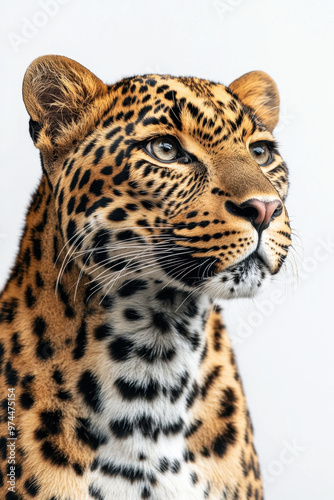 Leopard Portrait, Proud leopard gazing away from the camera, showcasing its beauty against a clean white background, ideal for wildlife photography
