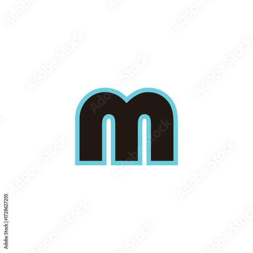 Letter m neon, blue geometric symbol simple logo vector