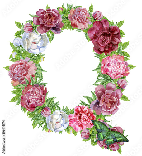 Letter Q of watercolor flowers