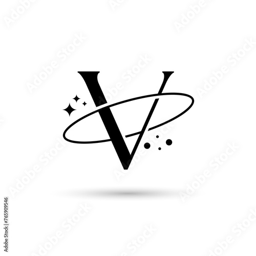 Letter V Vector Logo On Which An Abstract Image Of A Planet