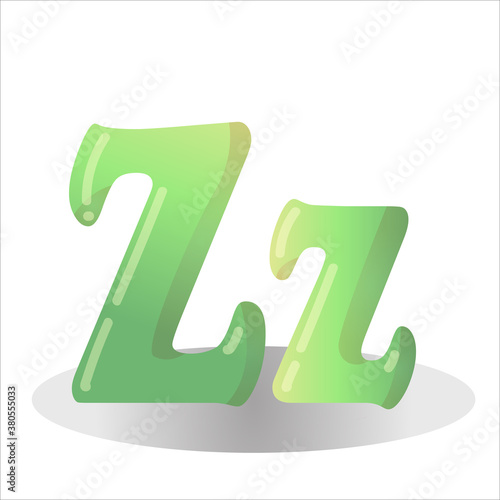 Letter Z green color drawn in cartoon style. Children's English alphabet. Vector illustration isolated on white background