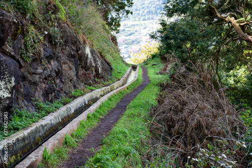 Levada dos Marocos also known as the Mimosa valley near Machico on the Island of Madeira. Leavdas are irrigation channels specific to the island.