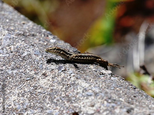 Lézard brun Teira dugesii endémqiue de l'île de Madère. Portugal