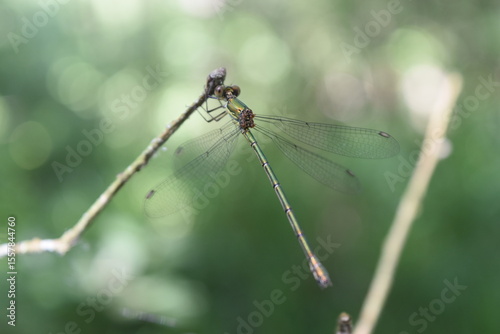 Libellule s'accrochant à une branche fine.