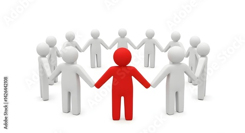 people, three-dimensional, jobbing, team, group, leader, teamwork, crowd, community, person, idea, man, icon, businessman, illustration, red, together, different, circle, abstract, symbol, only, manager, communication