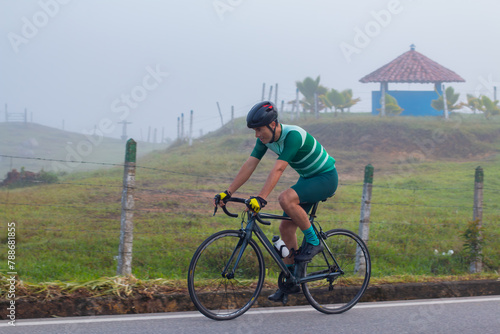 lifestyle, concept, bicyclist, road, training, general, plan, bicycle, cycling, man, triathlon, sport, male, guy, active, athlete, athletic, energetic, dynamic, contest, caucasian, professional, amateur, race, speed, green, colombian