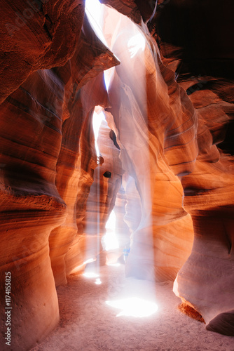 Light beams filtering through the rocks at Upper Antelope Canyon, Arizona, United States