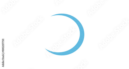 Light blue crescent paper cutout, moon icon, waxing moon symbol, crescent moon icon symbol set on transparent background.