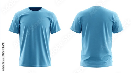 t-shirt, blue, light, apparel, blank, male, front, back, short, sleeve, design, print, fashion, casual attire, clothing, unisex, summer, simple, plain, colours, style, graphic, cotton, jersey, soft, comfortable, casual clothes, basic, template, product, display, render, digital, isolated, white, background, photo, illustration, empty, textile, wearable