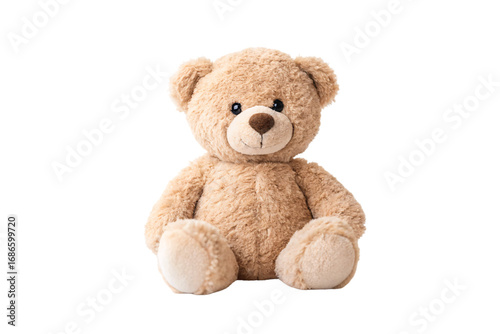 Light brown teddy bear without accessories, sitting position, fluffy fur texture, dark button eyes and nose, isolated on a transparent background