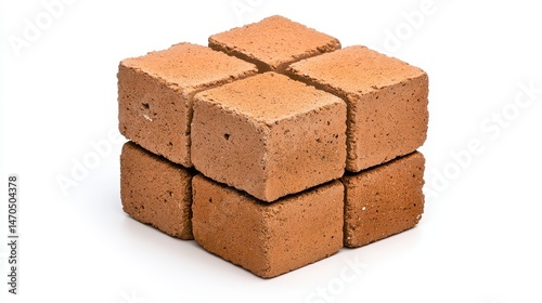 Light Brown Textured Cube Composed of Smaller Cubes on White