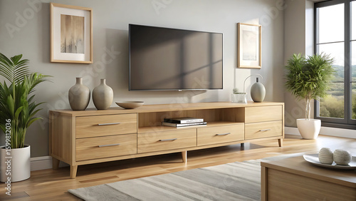 light, oak, furniture, concealed, drawer, television, cabinet, console, media, modern, room, setup, home, minimalist, unit, flat, style, interior, design, storage, living, wood, simple, clean, neutral, kitchen, television, table, house, wall, luxury, sofa, hotel, contemporary, chair, lcd, floor, three-dimensional, screen, apartment, indoor, video