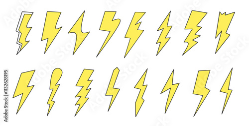 lightning bolt flat icon set, lightning icon with lightning bolt, electric power symbol