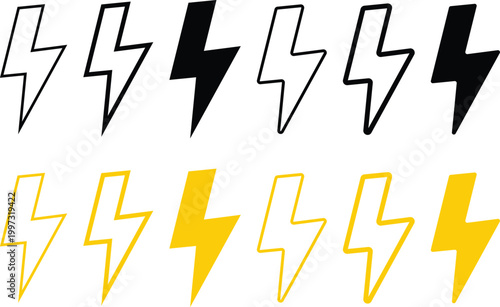 Lightning bolt icon. Electrical spark and thunderbolt icons. Fast motion and electrical surge design. High voltage and energy flash symbols