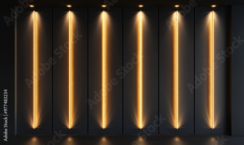 Lights of a night city shine on an empty night stage on an empty background of neon lights. A dark modern abstract neon background with diodes, rays and lines. An empty night scene.