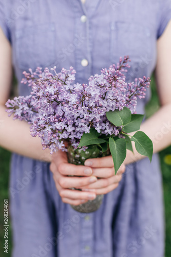 hand, girl, garden, floral arrangement, flower, floral, flora, bouquet, blossom, blooming, beautiful, floral pattern, woman, violet, unrecognizable, teenage, summer, spring, purple, plant, outdoors, nature, lilac, lavandula, hold, caucasian, white