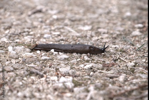 Limace rampant au sol .