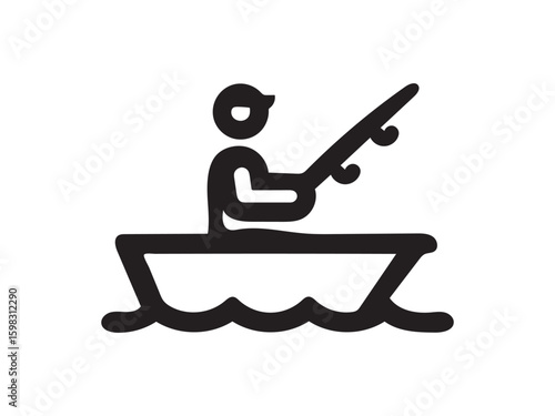 Line Art Fishing Icon | Man in Boat Catching Fish Silhouette Design