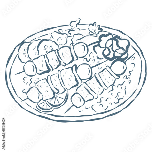 Line Art Illustration of Mediterranean Dish. Vector Graphic.
