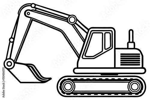 Line Drawing of Excavator - Vector Illustration | Detailed Line Art Design