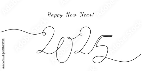 Line drawing with Happy New Year 2025. Celebrating the arrival of the New Year.
