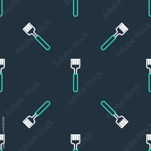 Line Fork icon isolated seamless pattern on black background. Cutlery symbol. Vector