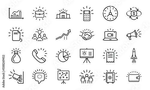 business, finance, vector, illustration, line art, outline, symbol, graphic, design, startup, growth, marketing, communication, success, strategy, presentation, meeting, team, agreements, handshake, briefcase, building, office, calculating machine, light bulb, idea, money, cash, billfold, bag, profit, exchange, document, laptop, computer, megaphone, phone, phone, pie chart, receipt, rocket, launch, target, goal, payment, card, credit card