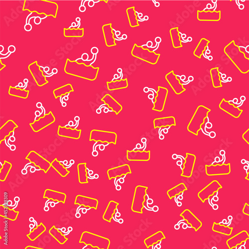 Line Water polo icon isolated seamless pattern on red background. Vector