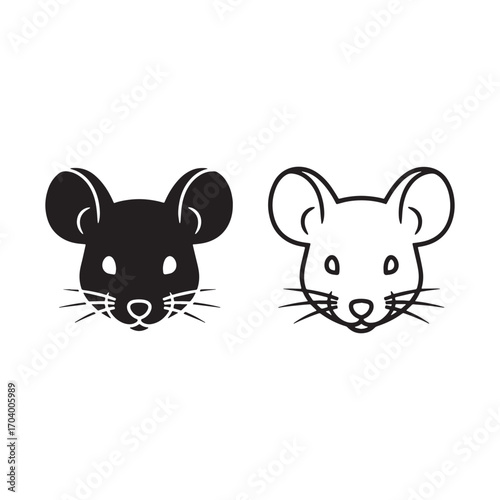 Linear Mouse Silhouette & Mouse Lineart – Mouse Vector Outline Using Strong Black Lines – Black Vector of Mouse – Vector Set of Mouse
