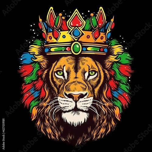 Lion with the colors of reggae, Lion with crown, Lion king, lion king, colorful lion