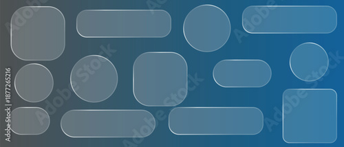Liquid glass vector buttons and round circle in different shapes. White ui light frame square and circle banner with shine stroke. UI interface element with blur effect smartphone interface isolated.