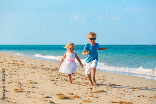 little boy and girl running at beach