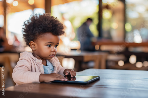 little boy playing on a tablet, smartphone, completely focus on the screen , technology
