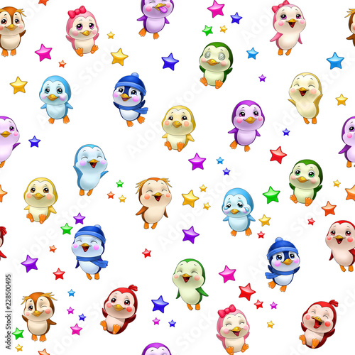 animal, art, baby, background, beautiful, bird, cartoon, character, children, childish, colours, cute, decoration, design, emotion, face, fun, girl, happy, illustration, little, nature, pattern, penguin, penguin, seamless, smile, star, texture