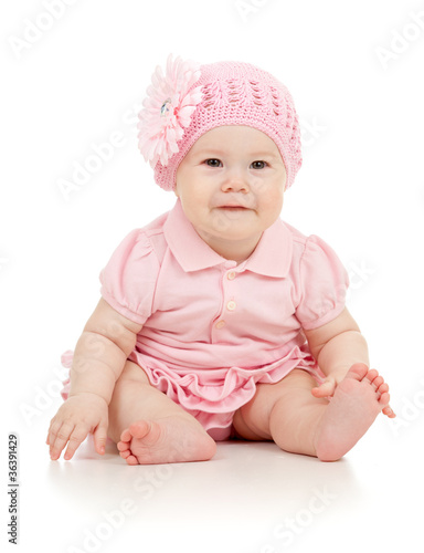 children, clothes, adorable, baby, barefooted, beauty, beret, angel, casual attire, caucasian, cute, fashion, flower, funny, girl, happy, hat, infancy, isolated, little, little girl, pink, portrait, pretty, sitting, smiling, studio, suit, white