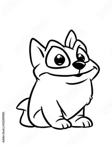 Little dog sitting looking coloring page cartoon illustration