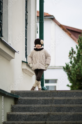 Little fashionable girl in warm clothes