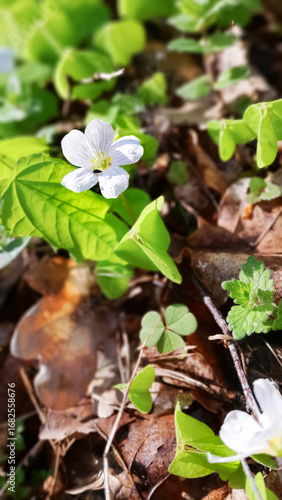 white, little, flower, flower, leaf, leaf, green, early, young, spring, plant, environment, vegetation, environmental, growth, growing, nature, natural, close, up, closeup, forest, ground, background